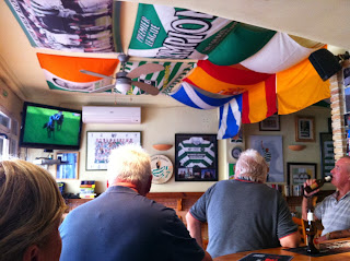 The campsite was about 3km outside the resort of Guardamar which was reached on a cycle path. With our location being so far south our satellite system could not pick up any UK signals hence the size of the dish in the above picture, nothing under a 3 metre dish works this far south. So we decided to walk into town to have a look around and see if we could buy some DVD's from the local supermarket. Sitting outside a bar we got chatting to two Brits who quickly pointed us in the direction of a bar where we could buy 4 DVD's for €10, bargain....but not quite kosher. The bar was small and dedicated to Celtic Football club and owned by two Glaswegians. We explained to the bar man that we had been sent on the recommendation of a certain individual to buy some DVD's. Well it turns out that the person who recommended the bar was an ex-policeman...enough said.